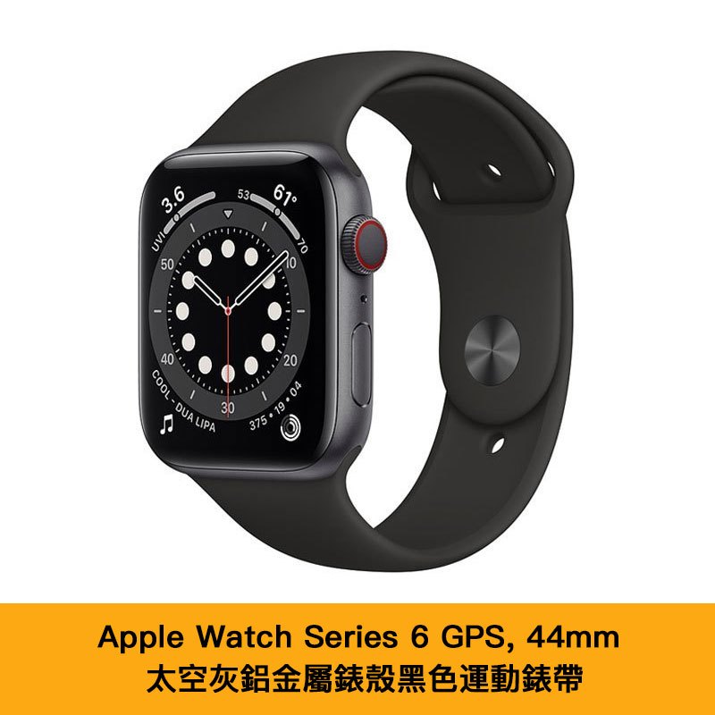 自營 香港倉 Apple蘋果 Watch Series 6 智能手錶 GPS, 44mm 太空灰鋁金屬錶殼黑色運動錶帶