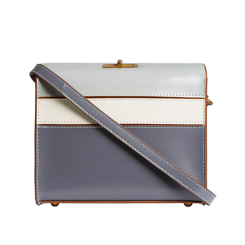 自營 香港倉 LEATHER LUCENT 牛皮拼色 女士時尚手袋 Purple/Blue牛皮女士時尚拼色上開口包