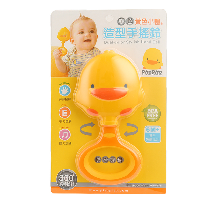自營 香港倉 PiyoPiyo 黃色小鴨 造型雙色手搖鈴