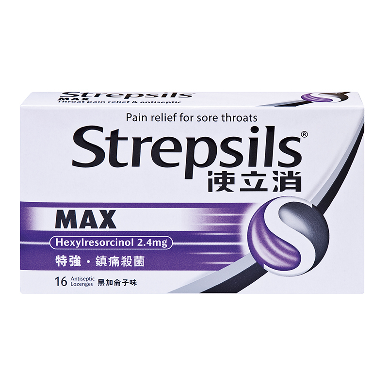 自營 香港倉 Strepsils 使立消特強鎮痛殺菌配方 黑加侖子味喉糖16粒裝