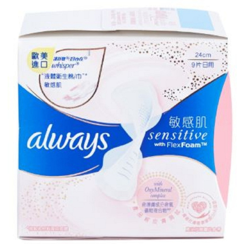 自營 香港倉 Whisper 護舒寶SENSITIVE系列日用24cm 9片