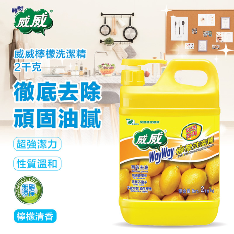 自營 香港倉 威威(WayWay)-檸檬洗潔精 2KG