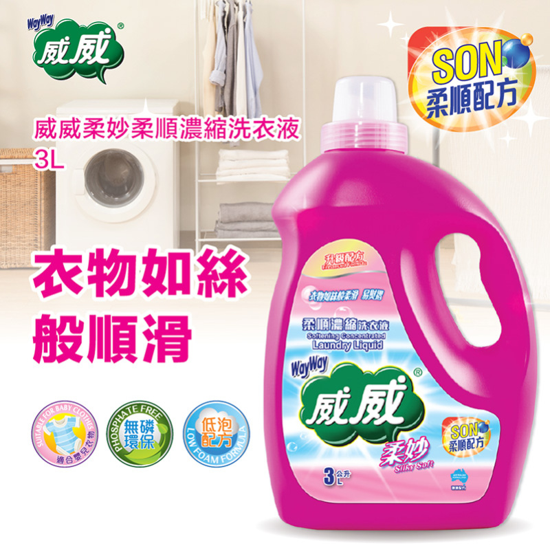 自營 香港倉 威威(WayWay)-柔妙柔順濃縮洗衣液 3公升