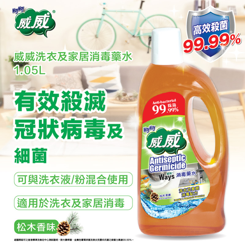 自營 香港倉 威威(WayWay)-洗衣及家居消毒藥水 1.05公升