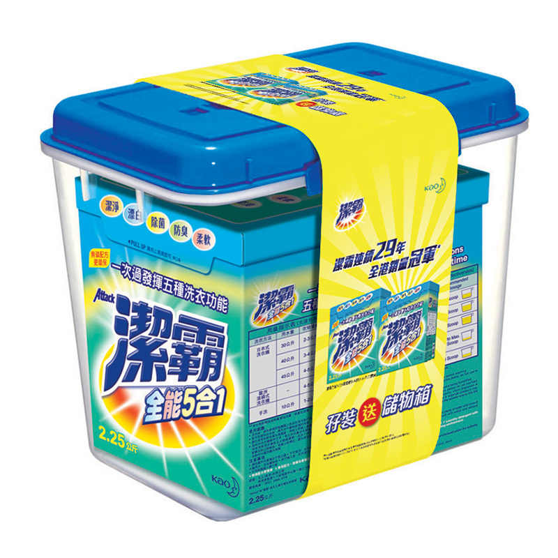 自營 香港倉 潔霸全能5合1超濃縮洗衣粉2.25KG(孖裝+膠盒)