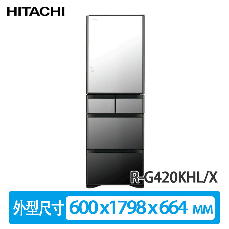自營 香港倉 HITACHI 日立 R-G420KHL/X 305公升 變頻 觸控式 多門雪櫃 晶鑽鏡面/左門鉸