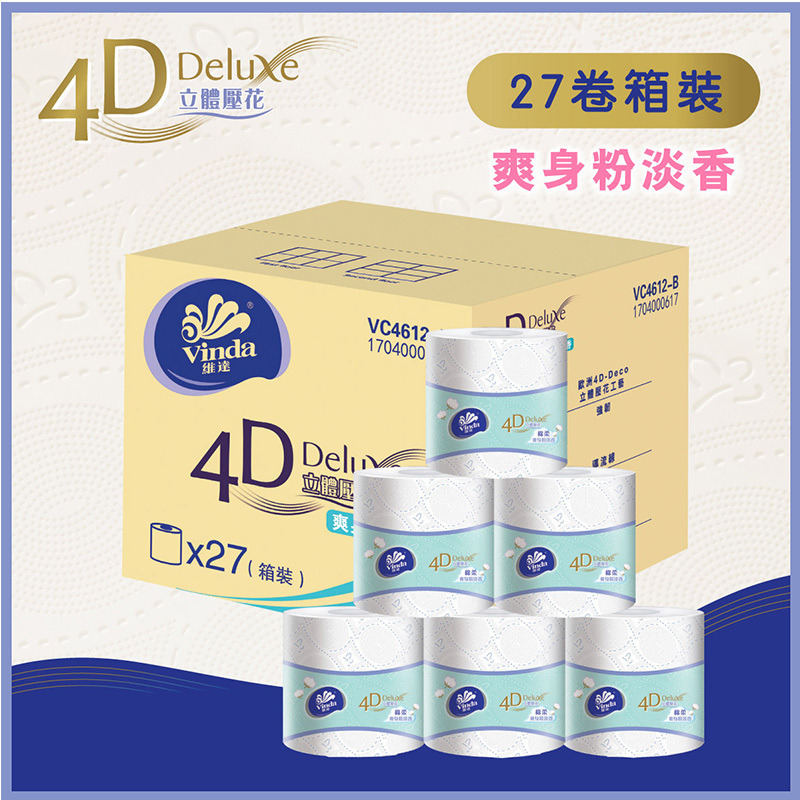 自營 香港倉 維達(Vinda)-4D Deluxe 4層立體壓花衛生卷紙(爽身粉淡香)(27卷原箱裝)