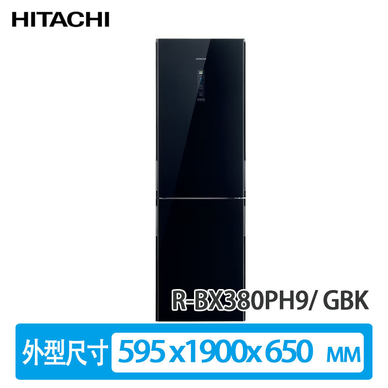 自營 香港倉 HITACHI 日立 R-BX380PH9/GBK 312公升 下置式冷凍型 變頻 觸控式 雙門雪櫃 黑影玻璃/右門鉸