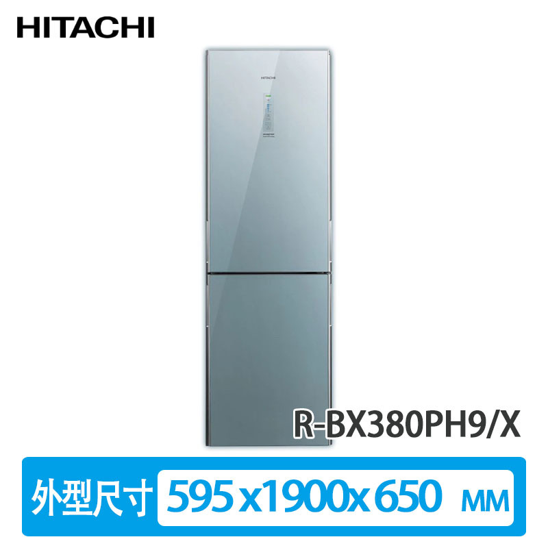 自營 香港倉 HITACHI 日立 R-BX380PH9/X 312公升 下置式冷凍型 變頻 觸控式 雙門雪櫃 晶鑽鏡面/右門鉸