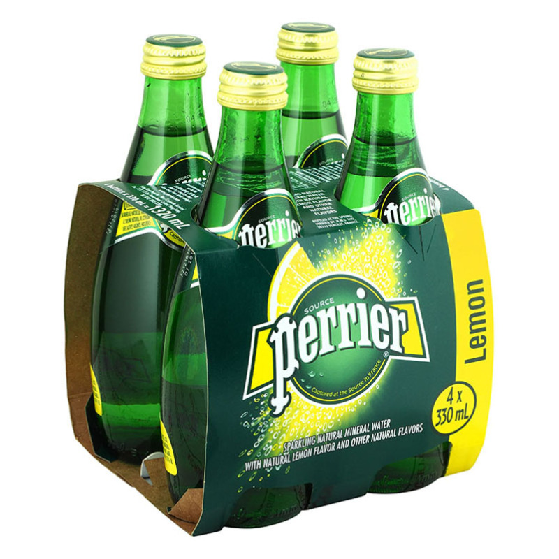 自營 香港倉 Perrier巴黎純天然有氣礦泉水檸檬味(玻璃樽) 330ml X 4
