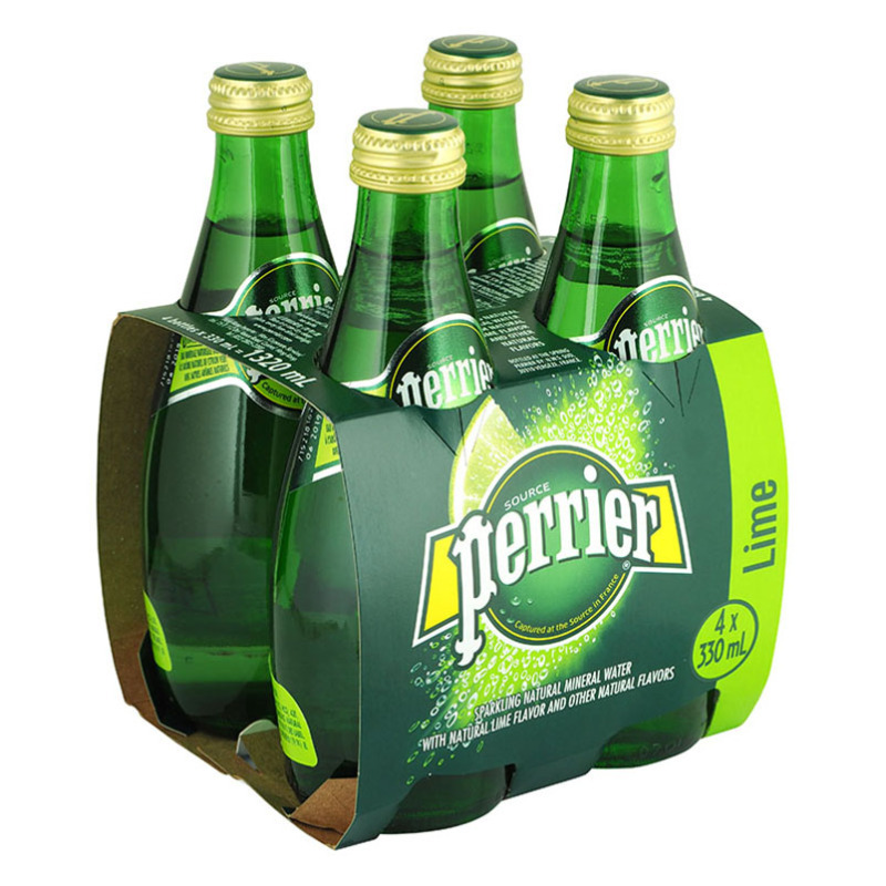 自營 香港倉 Perrier巴黎純天然有氣礦泉水青檸味(玻璃樽) 330ml X 4