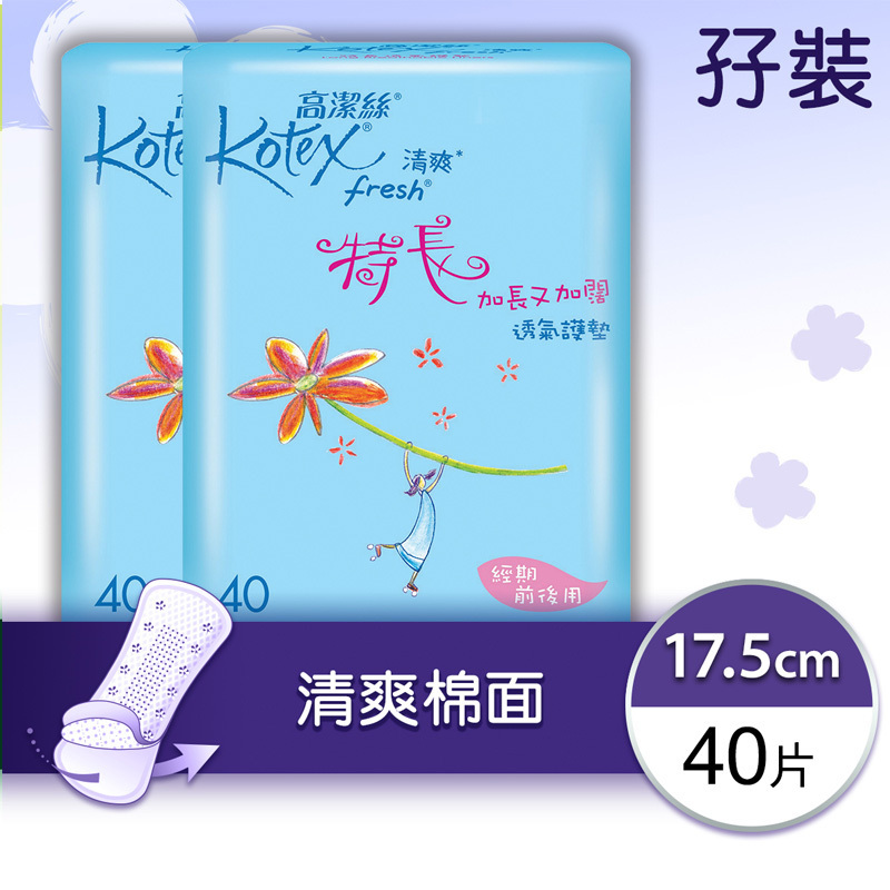 自營 香港倉 高潔絲(kotex) - 清爽透氣護墊(特長)(孖裝) 17.5cm 40片 x 2