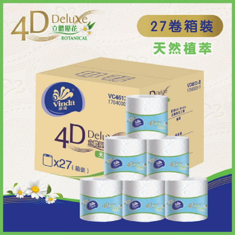 自營 香港倉 維達(Vinda)-4D Deluxe 4層立體壓花衛生卷紙(天然植萃)(27卷原箱裝)