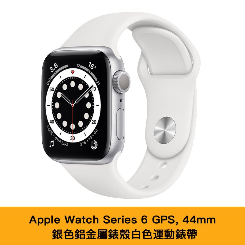 自營 香港倉 Apple蘋果 Watch Series 6 智能手錶 GPS, 44mm 銀色鋁金屬錶殼白色運動錶帶