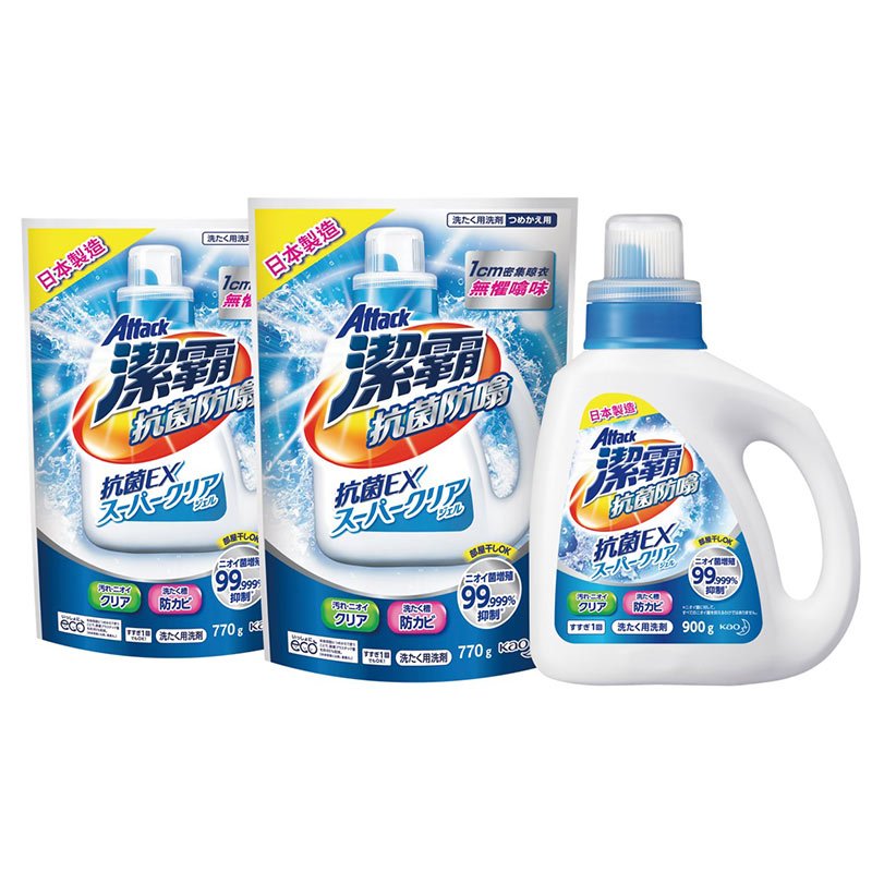 自營 香港倉 潔霸 - 抗菌防噏超濃縮洗衣液樽裝900ml+補充裝770ml X2
