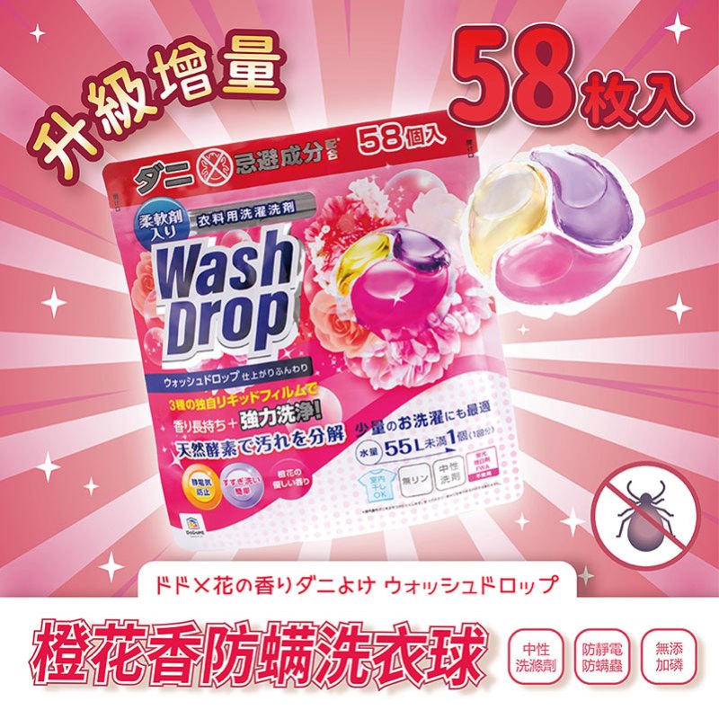 自營 香港倉 DODOME 橙花香防蟎洗衣球 58個