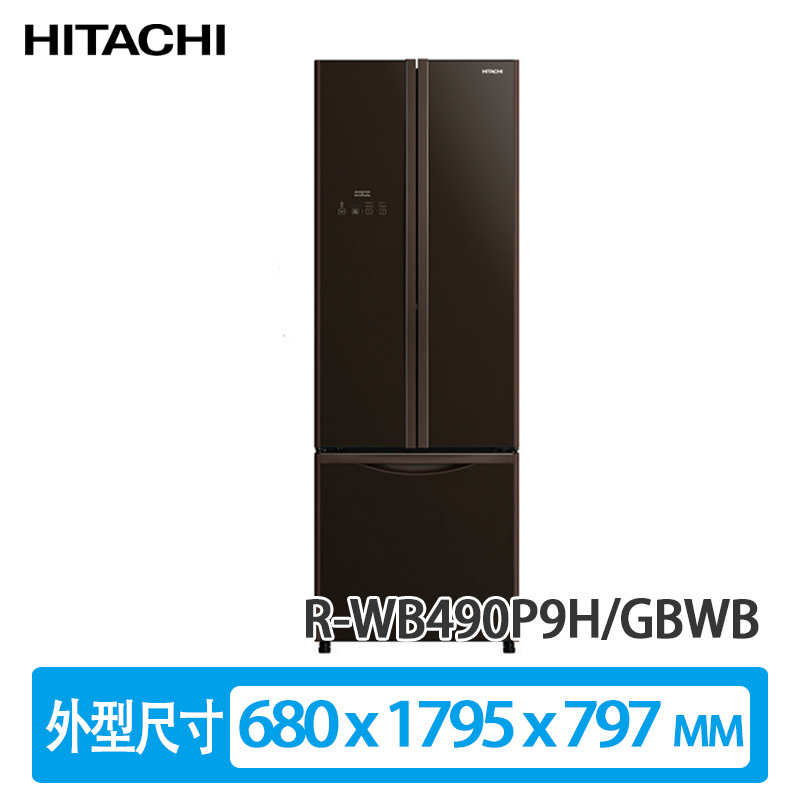 自營 香港倉 HITACHI 日立 R-WB490P9H/GBWB 388公升 變頻 觸控式 三門雪櫃 啡色玻璃