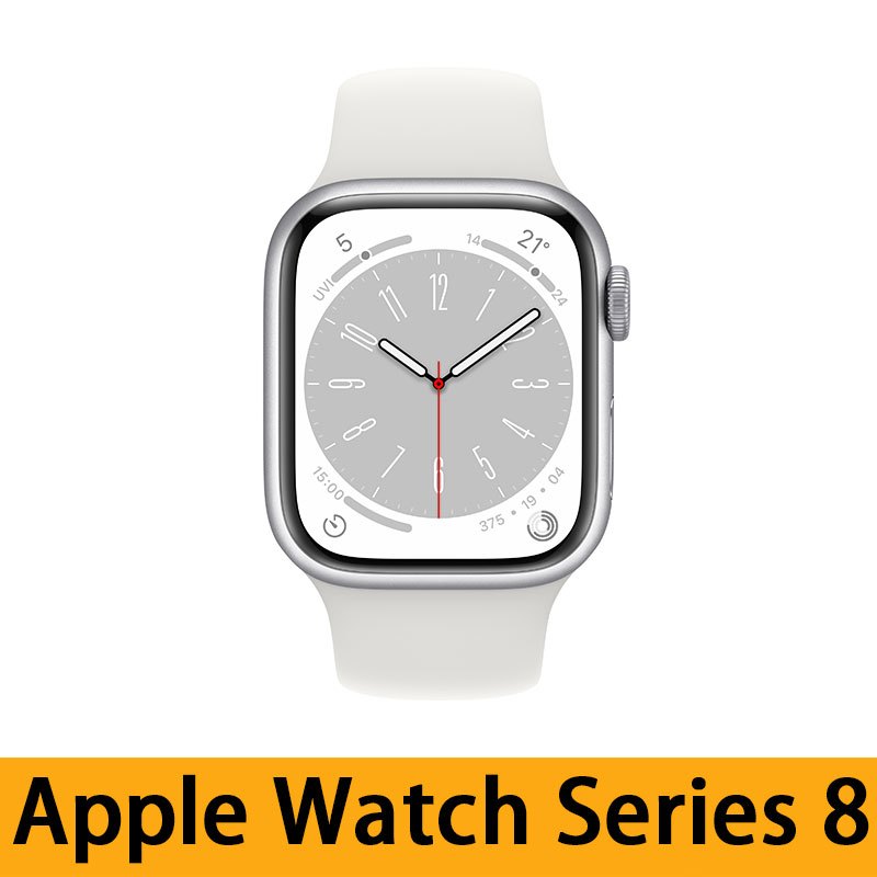 自營 香港倉 Apple蘋果 Watch Series 8 智能手錶 GPS+流動網絡 41毫米銀色鋁金屬錶殼白色運動錶帶