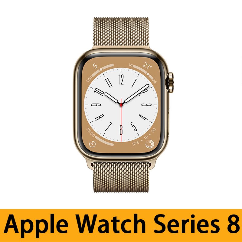 自營 香港倉 Apple蘋果 Watch Series 8 智能手錶 GPS+流動網絡 41毫米金色不鏽鋼錶殼金色鋼織手環