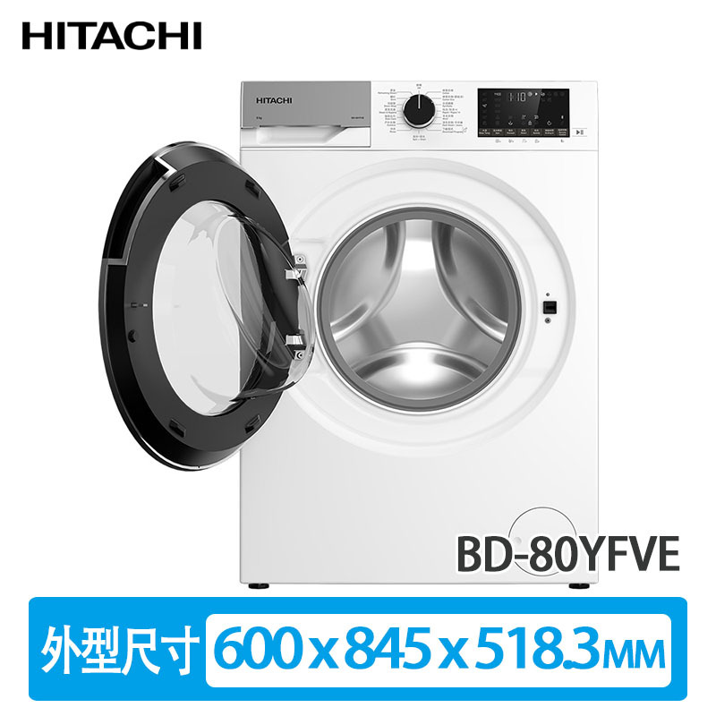 自營 香港倉 HITACHI 日立 BD-80YFVE 8公斤 1400轉 變頻 前置式洗衣機 白色