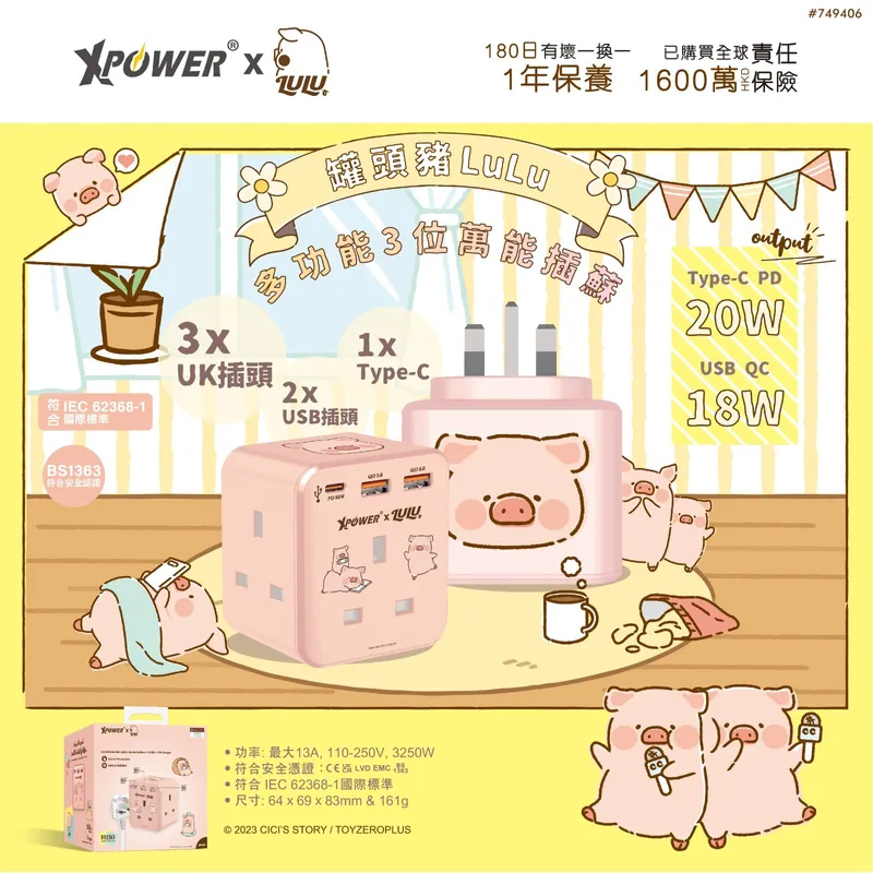 自營 香港倉 XPower x 罐頭豬Lulu豬 多功能3位萬能插蘇