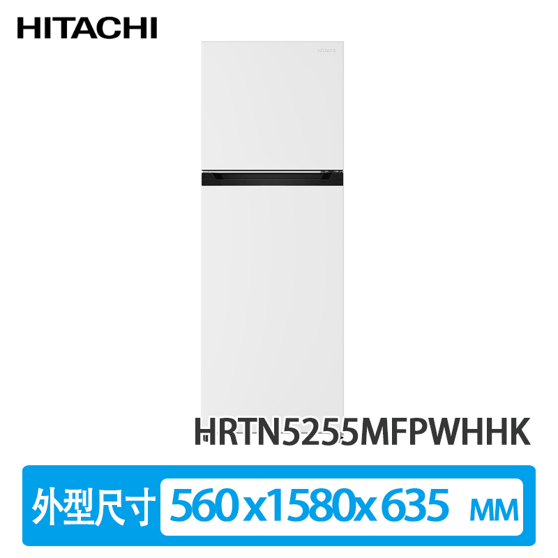 自營 香港倉 HITACHI 日立 HRTN5255MFPWHHK 235公升 上置式冷凍型 變頻 雙門雪櫃 白色