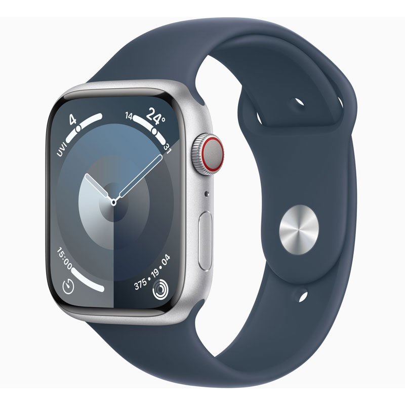 自營 香港倉 Apple Watch Series 9 智能手錶 GPS+流動網絡 45mm銀色鋁金屬錶殼風暴藍色運動錶帶S/M