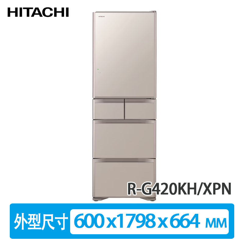 自營 香港倉 HITACHI 日立 R-G420KH/XPN 305公升 變頻 觸控式 多門雪櫃 晶亮香檳金/右門鉸