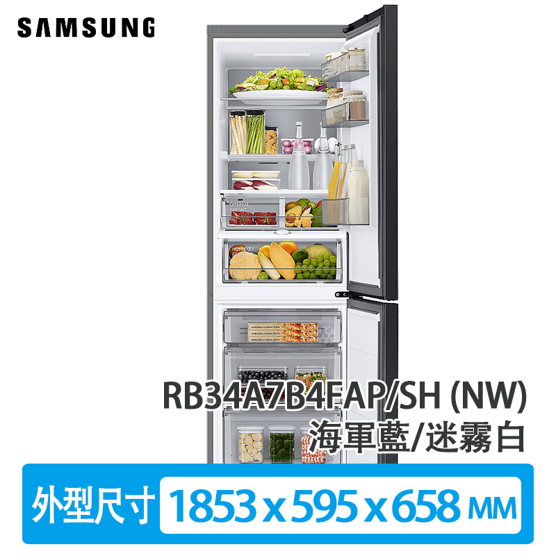 自營 香港倉 SAMSUNG 三星 RB34A7B4FAP/SH (NW) 340公升 下置式冷凍型 變頻 雙門雪櫃 海軍藍/迷霧白