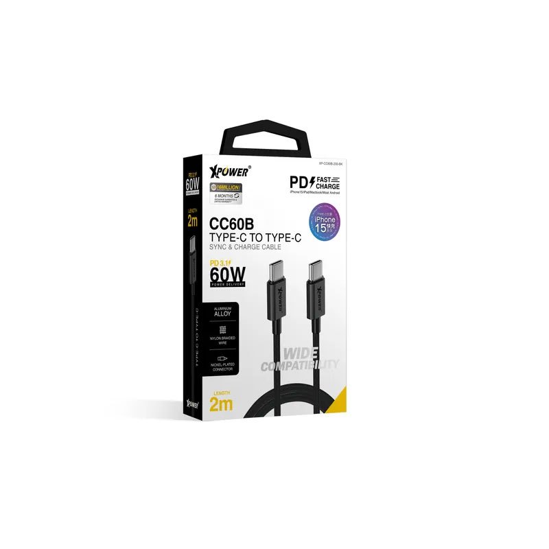 自營 香港倉 XPower CC60B 2m 鋁合金60W高速傳輸充電Type-C>Type-C線 黑色