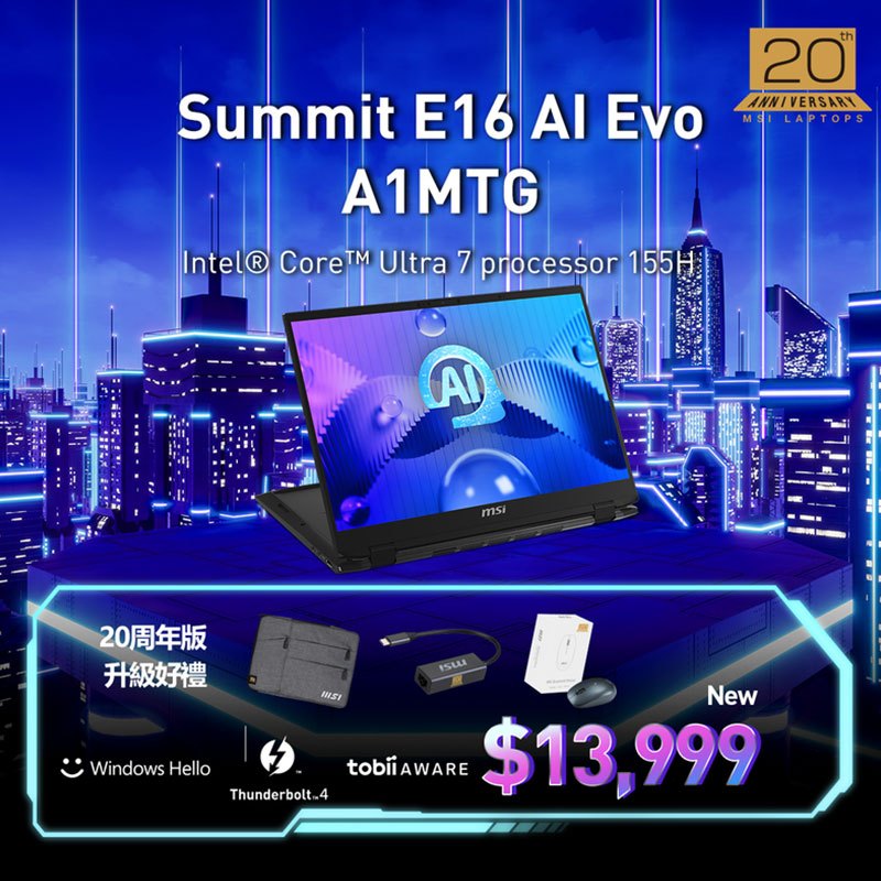 自營 香港倉 MSI Summit E16 AI Evo A1MTG-20週年特別版 U7/32GB/1TB 16吋手提電腦