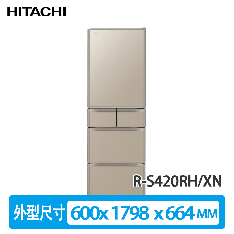 自營 香港倉 HITACHI 日立 R-S420RH/XN 313公升 變頻 多門雪櫃 晶瑩香檳金
