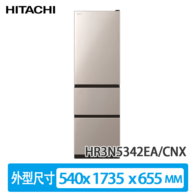自營 香港倉 HITACHI 日立 HR3N5342EA CNX 269公升 變頻 三門雪櫃 右門鉸/新不銹鋼香檳色