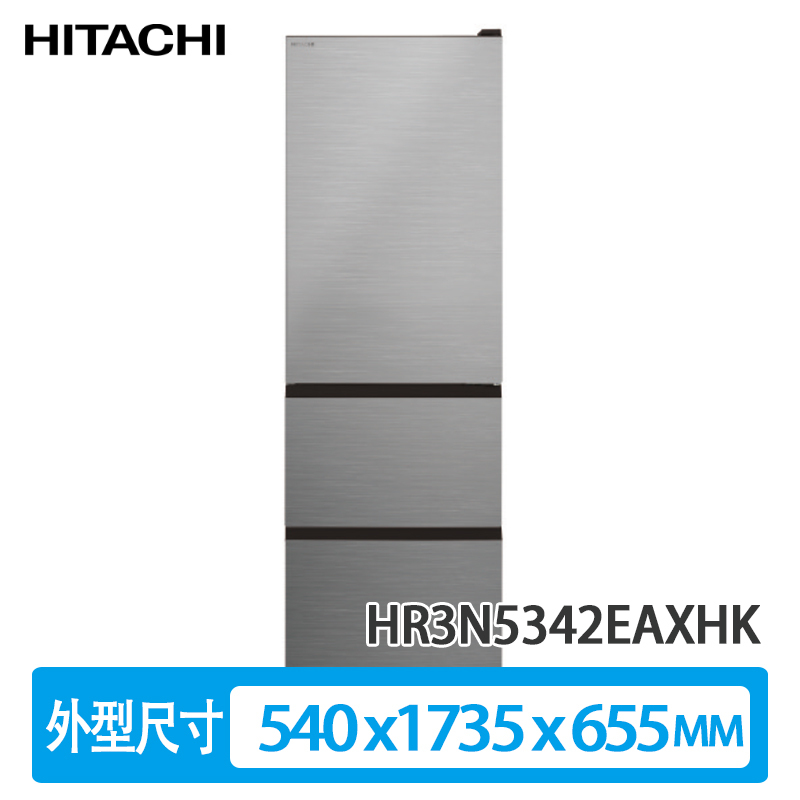 自營 香港倉 HITACHI 日立 HR3N5342EAXHK 269公升 變頻 三門雪櫃 炫酷鋼灰/右門鉸