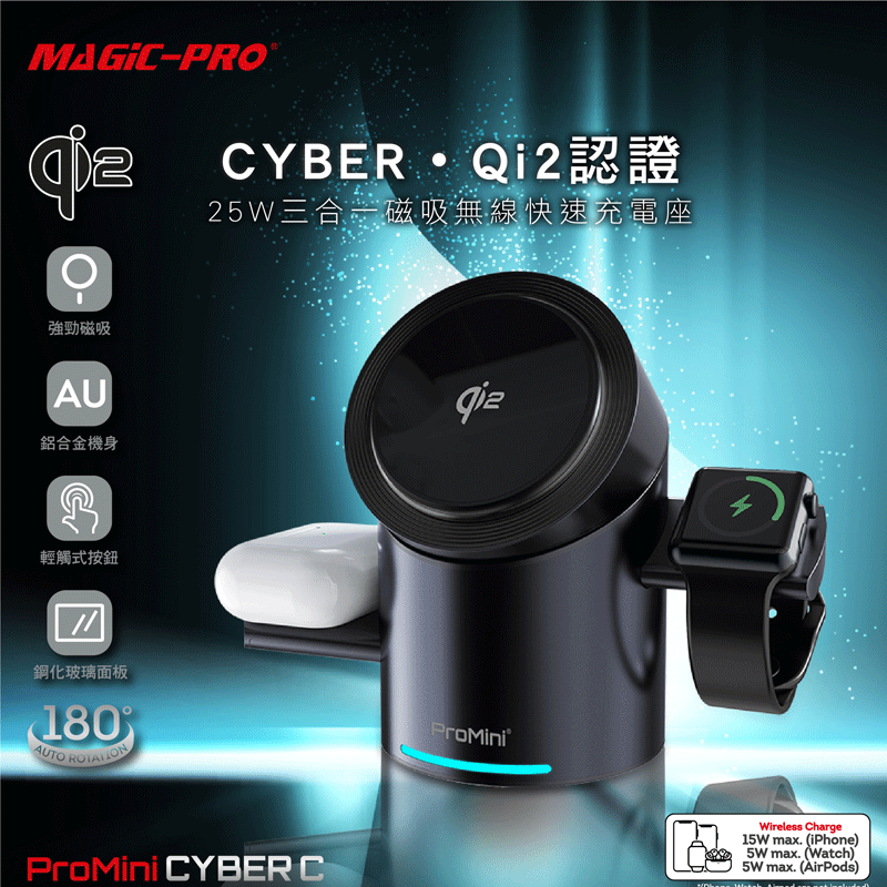 自營 香港倉 ProMini CYBER C 25W Qi2認證 磁吸3合1無線快速充電座(連火牛)