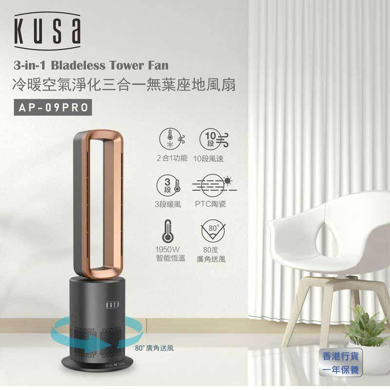 自營 香港倉 Kusa AP-09Pro冷暖空氣淨化三合一無葉座地風扇