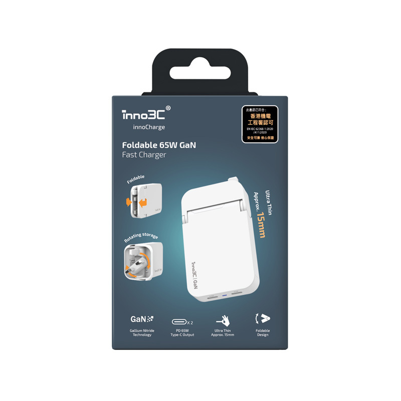 自營 香港倉 inno3C i-65UK 摺疊 65W GaN 快速充電器 白色
