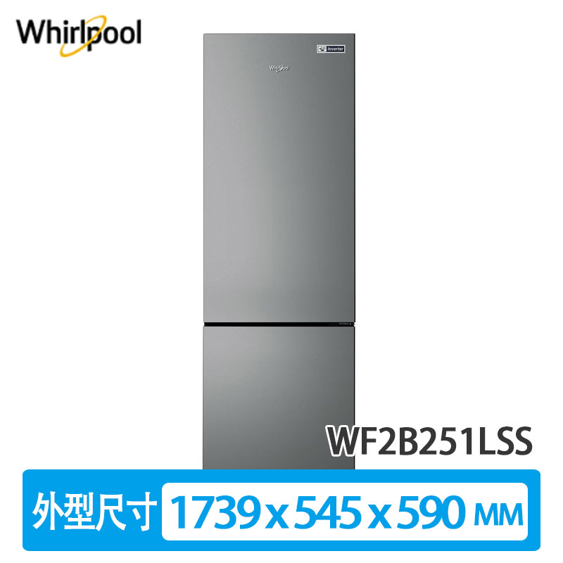 自營 香港倉 Whirlpool 惠而浦 WF2B251LSS 251公升 下置式冷凍型 變頻 雙門雪櫃 銀灰色/左門鉸