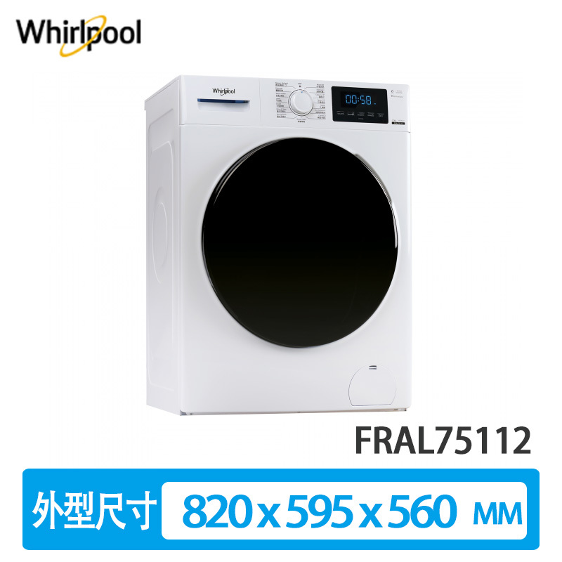 自營 香港倉 Whirlpool 惠而浦 FRAL75112 7.5公斤 1200轉 變頻 前置式洗衣機 嵌入式