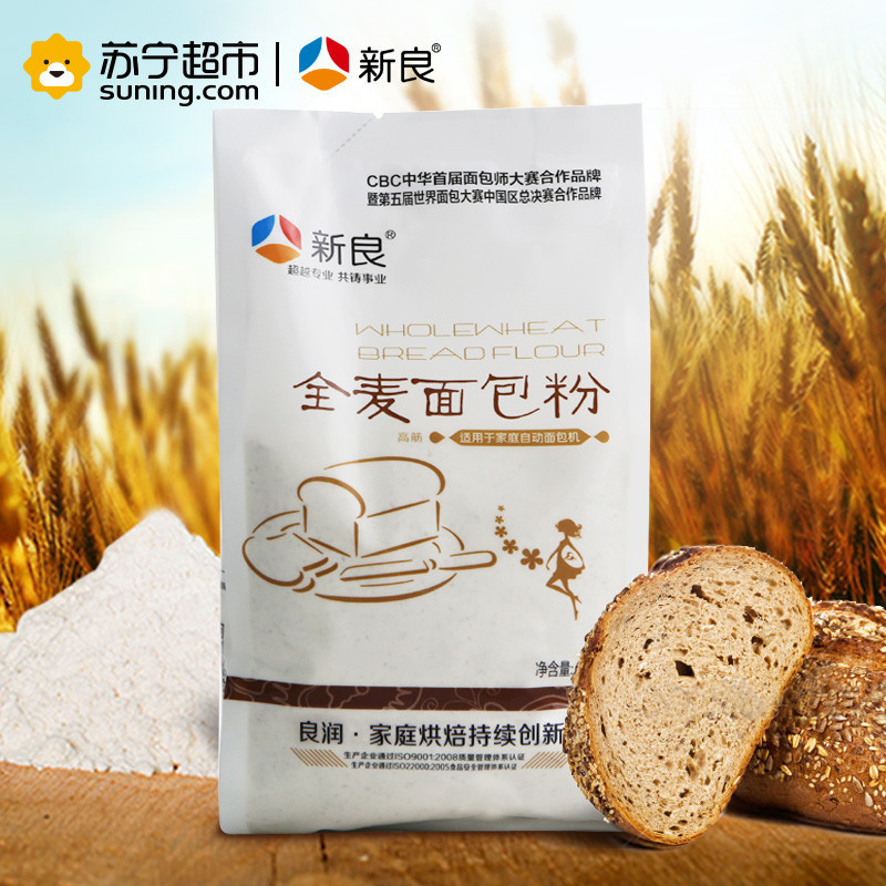 自營 深圳倉 新良全麥麵包粉(500g)全麥粉高筋面粉烘焙原料全麥吐司麵包原材料粗糧粉袋裝