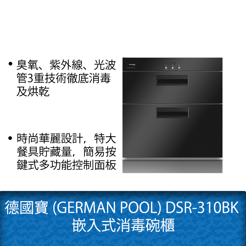 自營 香港倉 德國寶 (GERMAN POOL) DSR-310BK 嵌入式消毒碗櫃(黑色)