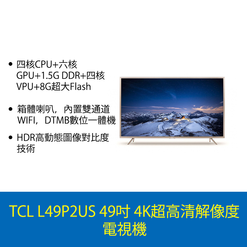 自營 香港倉 TCL L49P2US 49吋 4K超高清 智能電視機