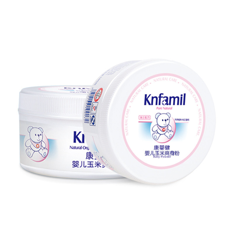 自營 深圳倉 康嬰健(Knfamil)嬰兒玉米爽身粉140g新生兒玉米痱子粉寶寶爽膚吸汗粉帶粉撲不含滑石粉