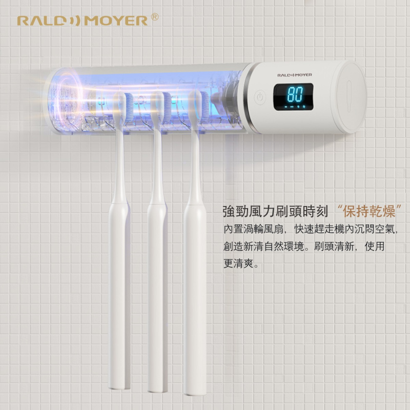 【2023年爆品】}Raldmoyer蘭德麥爾 X 飛利浦UVC+UVA燈珠智能殺菌牙刷盒架 |牙刷消毒器 - 免鑽墻版
