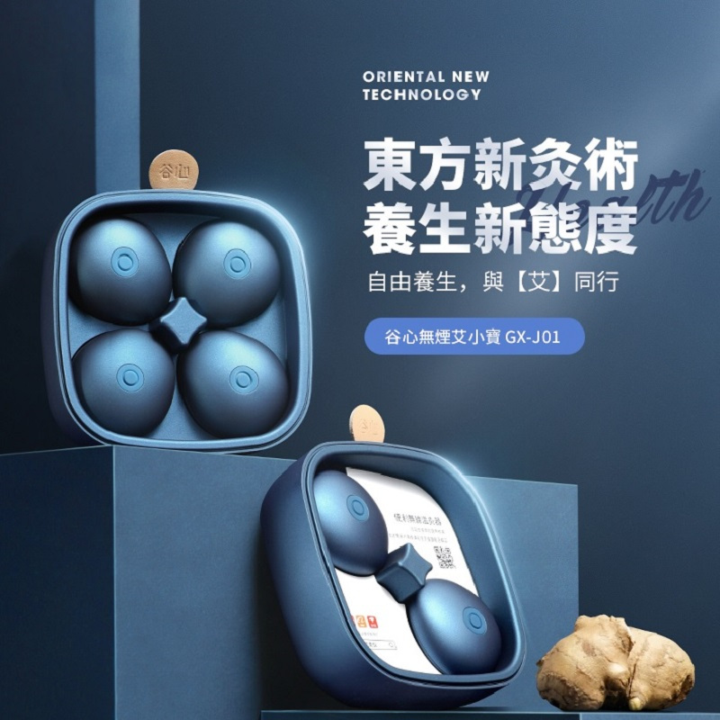 日本谷心 (送30片艾貼+穴位圖)智能恆温除痛石墨烯熱敷艾灸儀(一套四個頭) 舒緩肩脖腰部酸痛 - 藍色