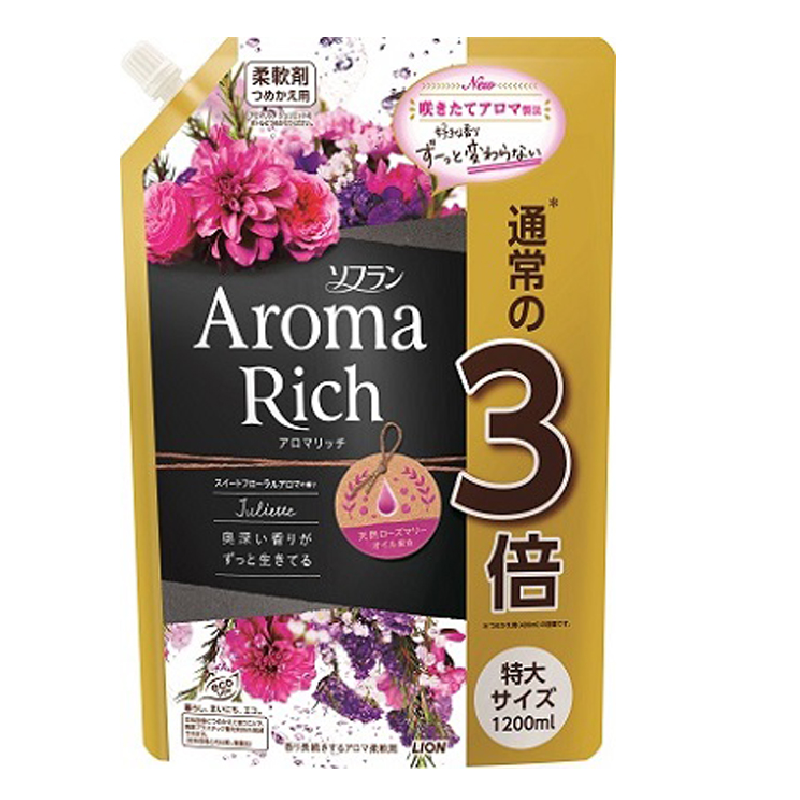 (LION-190)獅王 -[精選抗疫用品推介]朱麗葉 抗菌防臭.室內曬衣.防靜電香氛柔順劑補充裝(黑) 1200ml