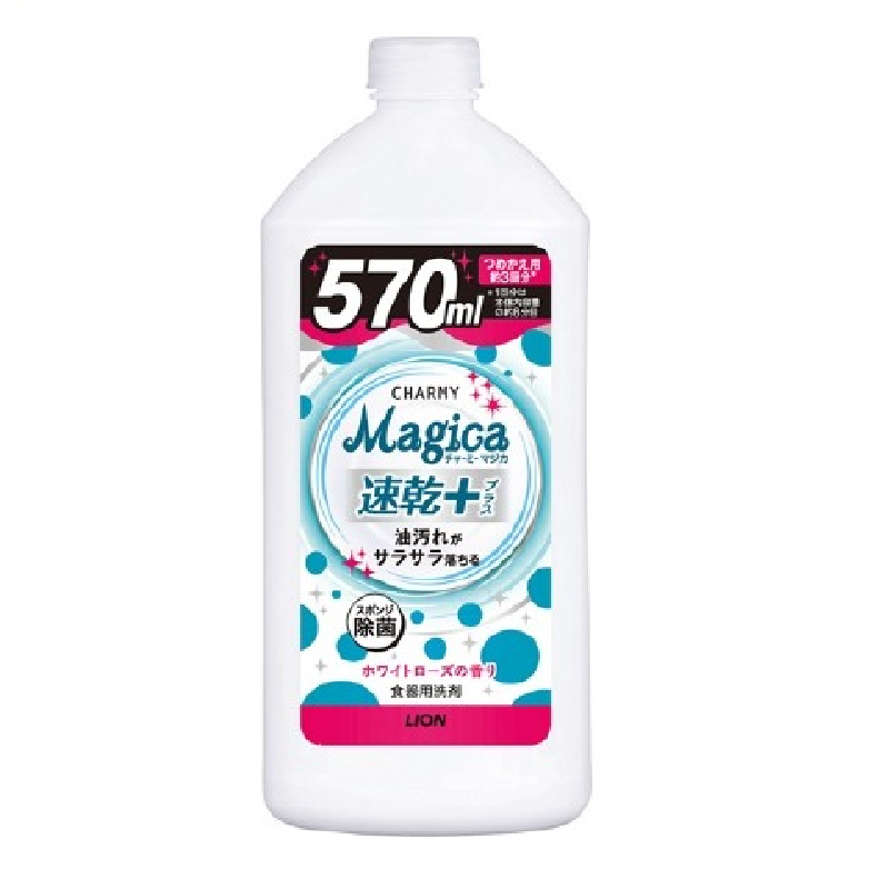 (LION-209)日本獅王-[精選抗疫用品推介]白玫瑰香 Charmy Magica去油速乾除菌洗潔精補充裝570ml