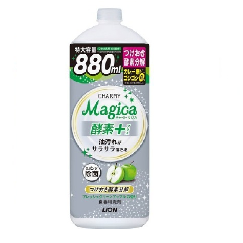 (LION-213) 日本獅王 - [精選抗疫用品推介] 青蘋果香 酵素+除菌濃縮去油污洗潔精補充裝(綠) 880ml