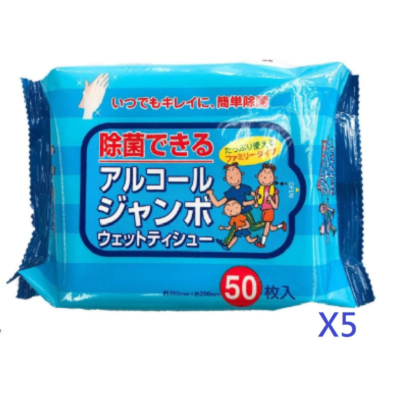 (WT-001SP5) [精選抗疫用品推介] [日本製造]除菌酒精消毒濕紙巾 50枚X5