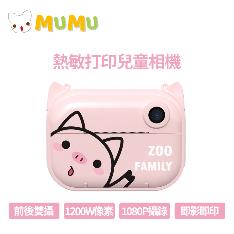 MuMu C3PRO-PIG 粉色小豬熱敏打印兒童相機 1200萬像素 前後雙攝像頭 免墨水打印